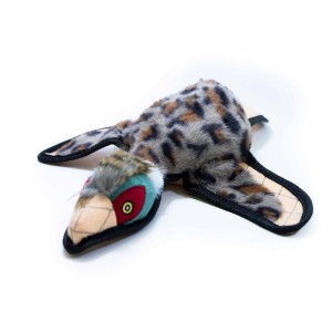 Pluszowy bażant dla psów ras średnich i dużych. Zabawka pikowana, wykonana z mocnego materiału z dodatkowymi obszyciami, by zabawa trwała w najlepsze przez długie godziny! Wierzch zabawki pokryty jest miłym, włochatym materiałem imitującym upierzenie. Posiada dużą piszczałkę, która chrumka!