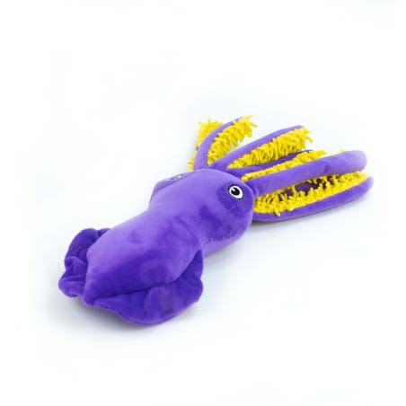 Calma to fioletowa kałamarnica, której żółte macki wydają szeleszczące dźwięki i mają różne faktury – to prawdziwa sensoryczna przygoda dla Twojego psa! Każda macka to nowe wyzwanie dla zębów i pyska. Zabawka sprawdzi się zarówno w domu, jak i na spacerze jako psia zdobycz! Rekomendowane dla szczeniaków oraz małych i średnich psów.